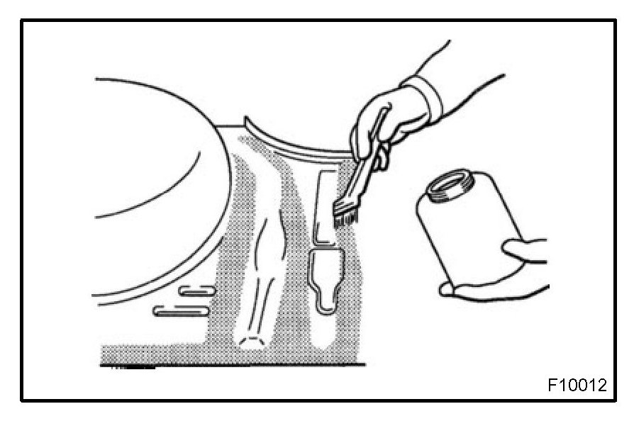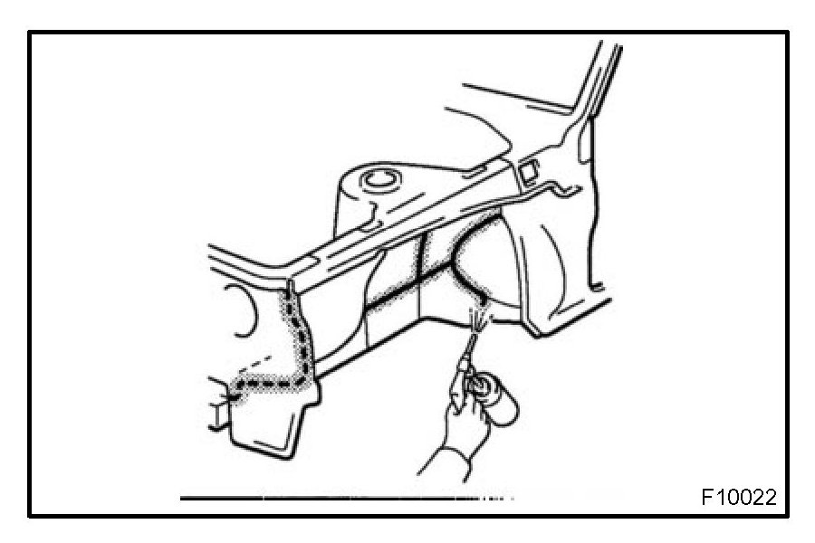 1. To prevent corrosion and protect the body from damage by flying stones, etc., apply anti-chipping paint to the rocker panel, wheel arch areas, valance panel, etc.