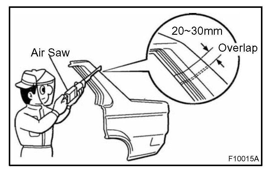 1. For joint areas, rough cut the new parts, leaving 20 - 30 mm (0.79 - 1.18 in.) overlap.
