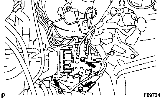 Remove the 3 bolts and ABS actuator assembly.