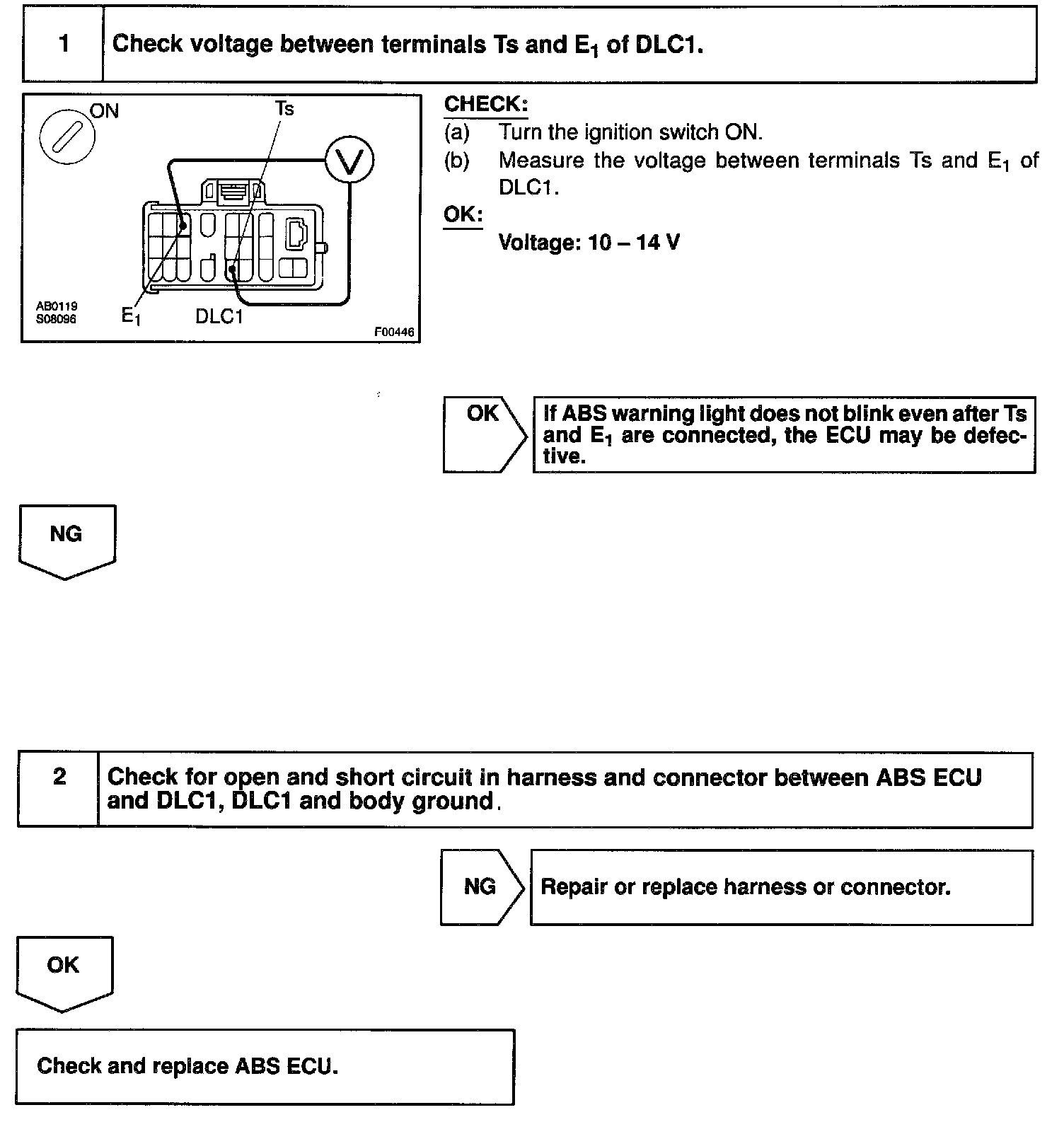 Connecting terminals Ts and E1 of the DLC1 starts the check.