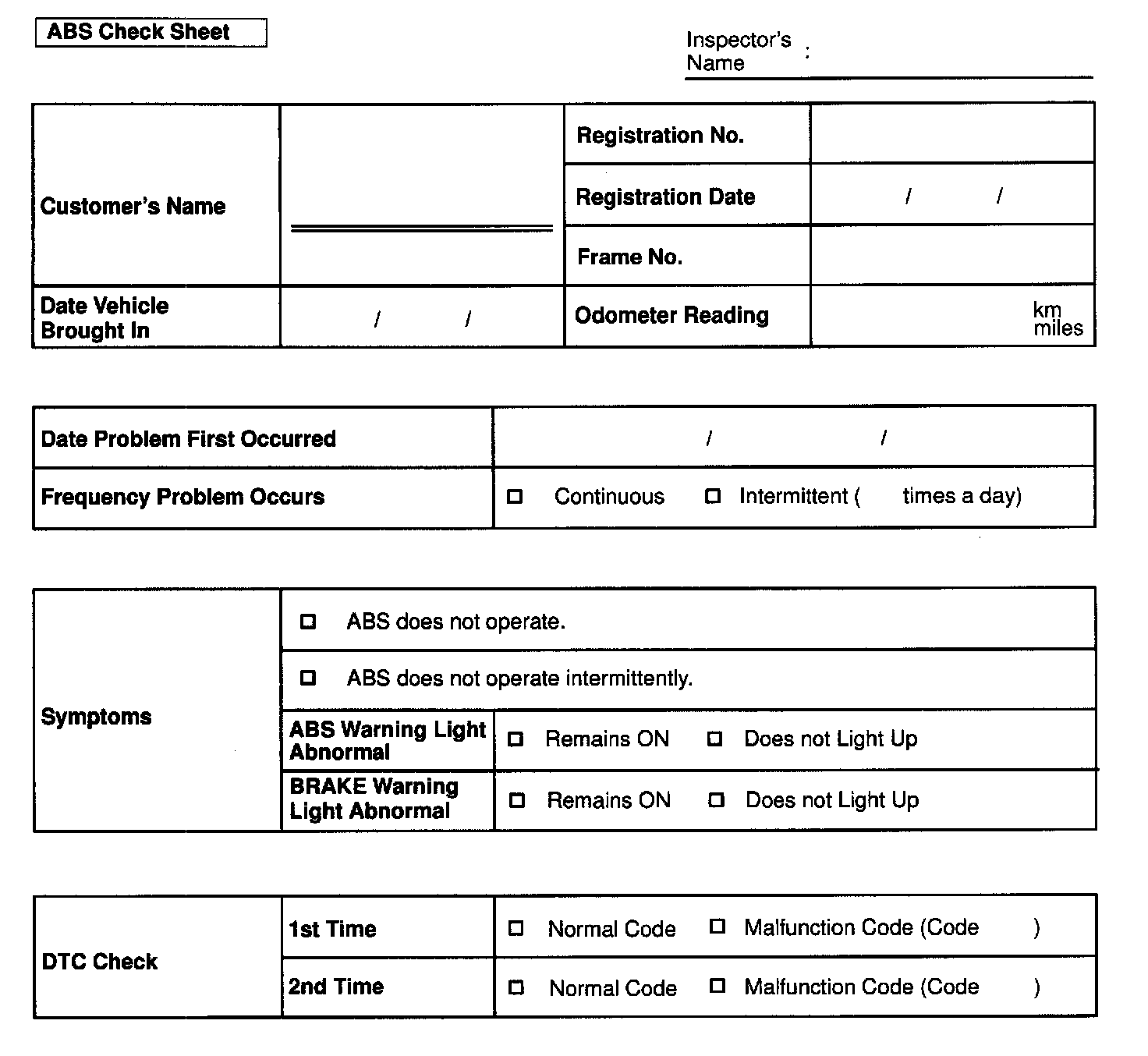 ABS Check Sheet: