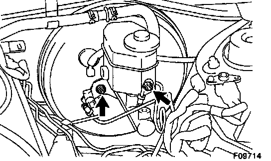 Remove the 2 mounting nuts, and pull out the 2 or 3-way, master cylinder and gasket.