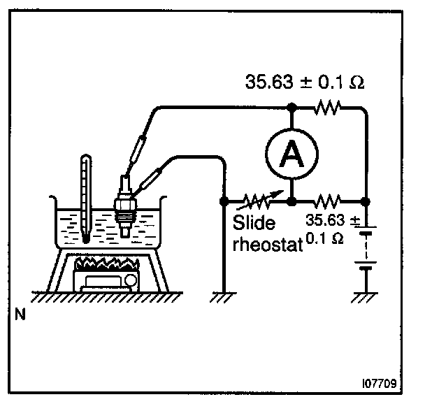 Connect the wire harness as shown in the illustration, and adjust the ammeter pointer to indicate "0" using the slide rheostat, then read the rheostat indication.