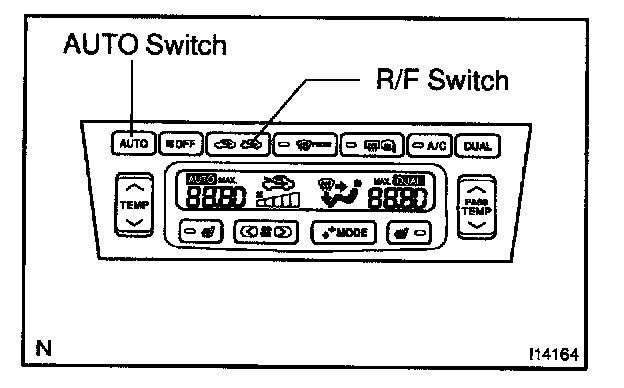 INDICATOR CHECKa. Turn the ignition switch on while pressing the air conditioning control AUTO switch and R/F switch simultaneously.