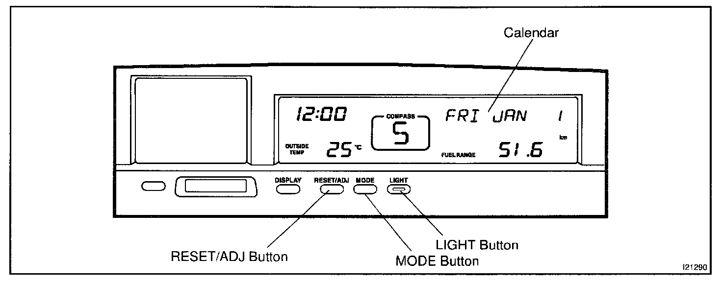 a. Stop the vehicle and push the "MODE" button several times until "ZONE XX" appears on the calender display.
