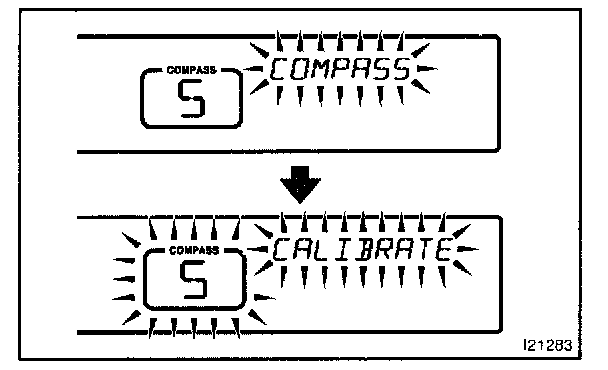 b. Then push the "RESET/ADJ" button. "CALIBRATE" appears and blinks together with the compass display.