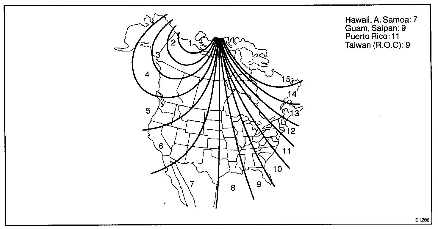 b. Then push the "RESET/ADJ" button, referring to the following map to select the number of the zone where the vehicle is.