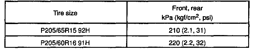Cold tire inflation pressure
