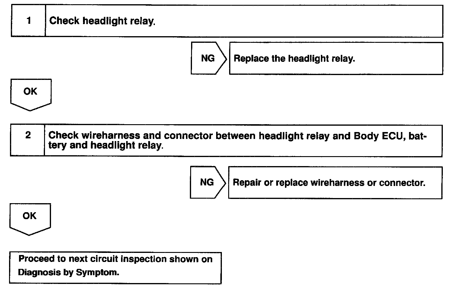 CIRCUIT DESCRIPTIONHead light relay will be "ON" by operating the headlight switch. The transistor which activates the taillight relay has two sorts: one activates directly by the headlight switch for fail safe and the other activates by CPU. the one that activates by CPU has two systems and prevents the headlight from turning off at the time of one system trouble in the automatic operation circuit.