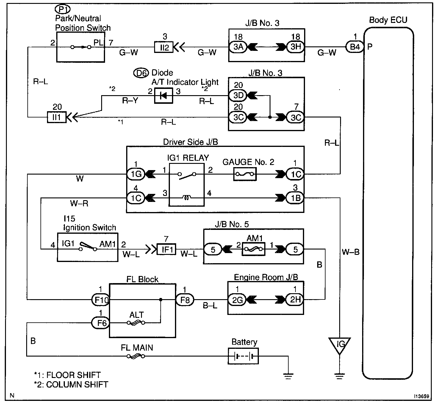 The park/neutral position switch detects the shift lever p position and sends signals to the Body ECU.
