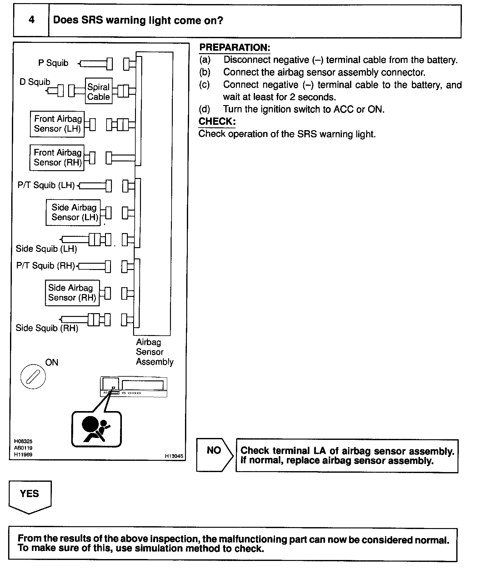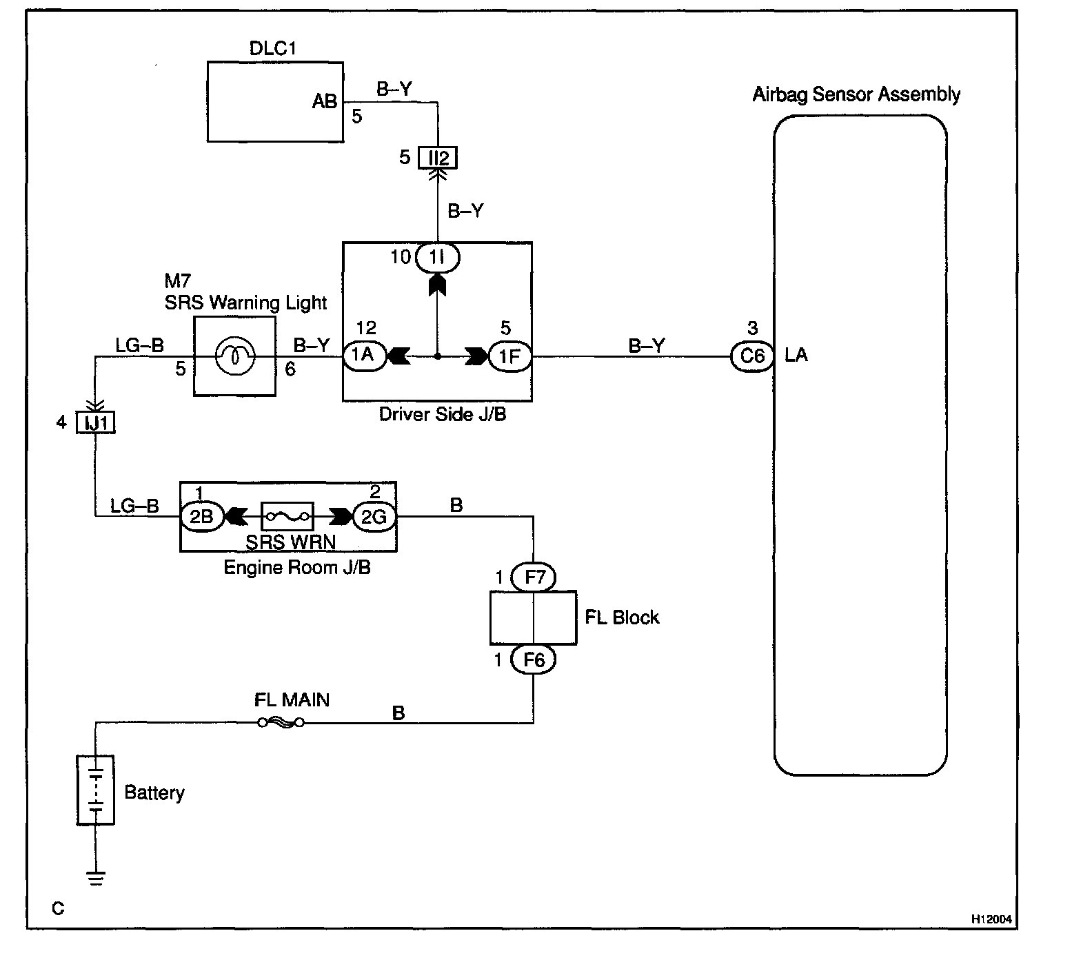 SRS Warning Light Circuit Malfunction (Does not light up, when ignition switch is turned to ON)CIRCUIT DESCRIPTION