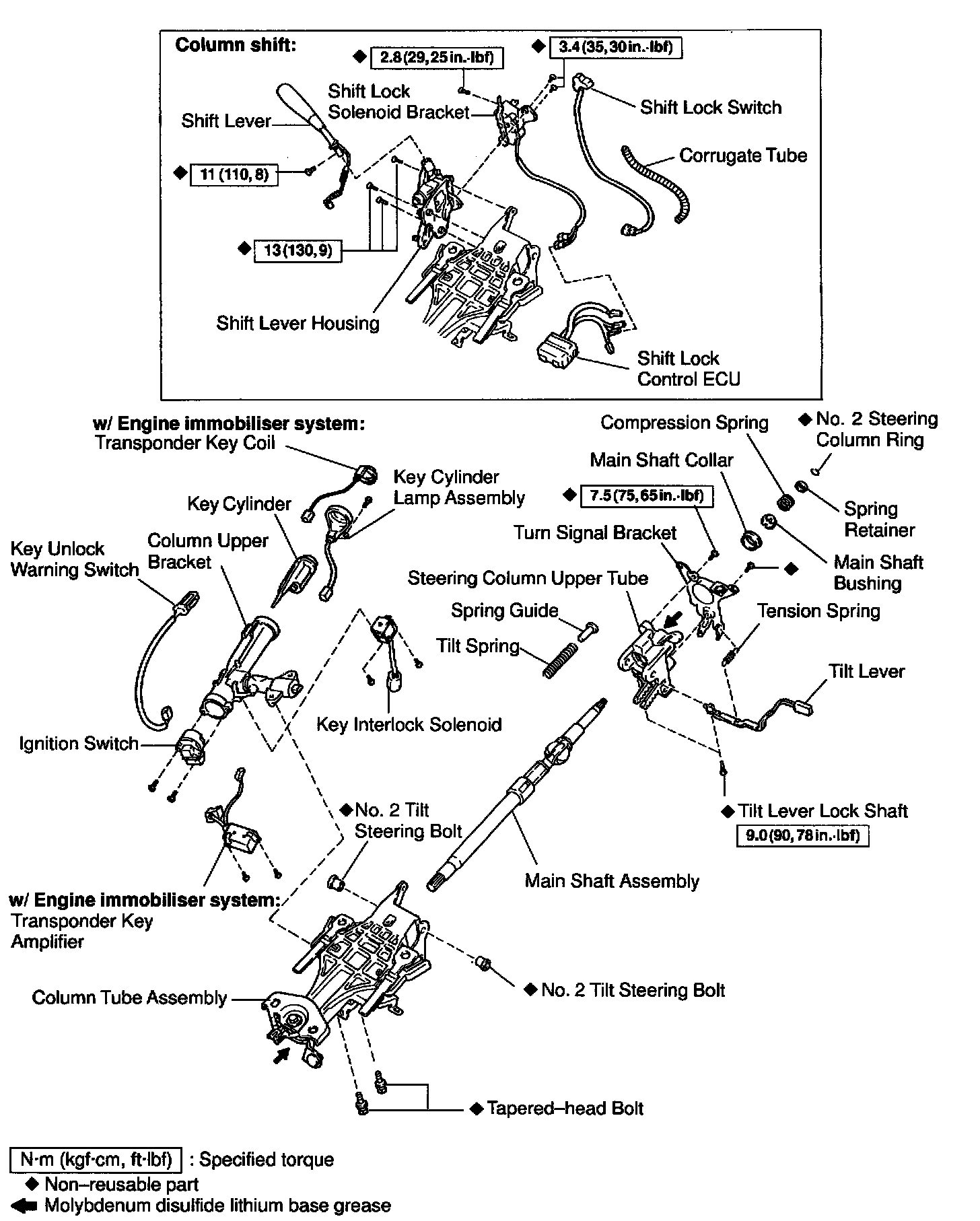 b. Remove the column upper tube with the main shaft assembly from the column tube assembly.