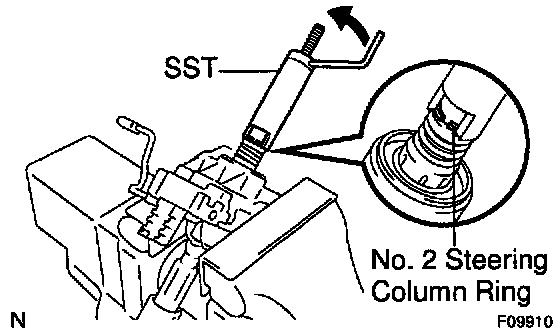 d. Using SST, push down the No. 2 steering column ring until it fits into the shaft groove and install the main shaft assembly.