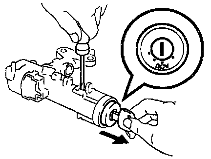 b. Push down the stop pin with a screwdriver, and pull out the key cylinder.
