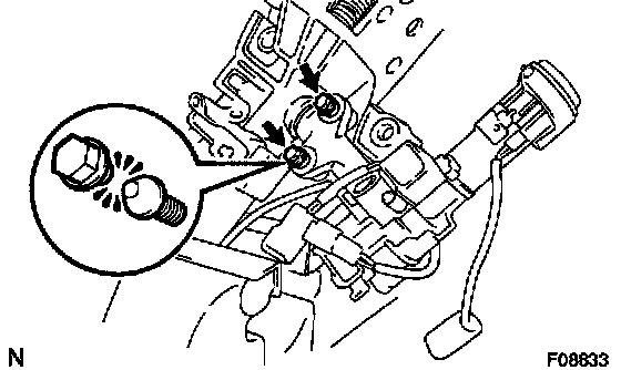 d. Temporarily install 2 new No. 2 tilt steering bolts.
