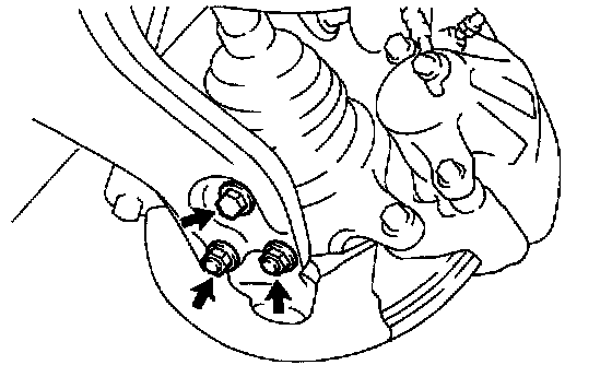 Remove the 2 nuts and bolt, and disconnect the lower suspension arm from the lower ball joint.