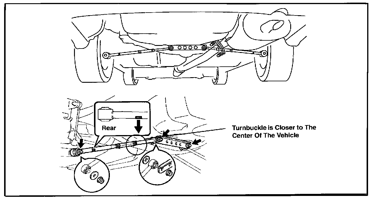 ^ Orient the No. 2 lower suspension arm so that the turnbuckle is closer to the center of the vehicle, as shown.