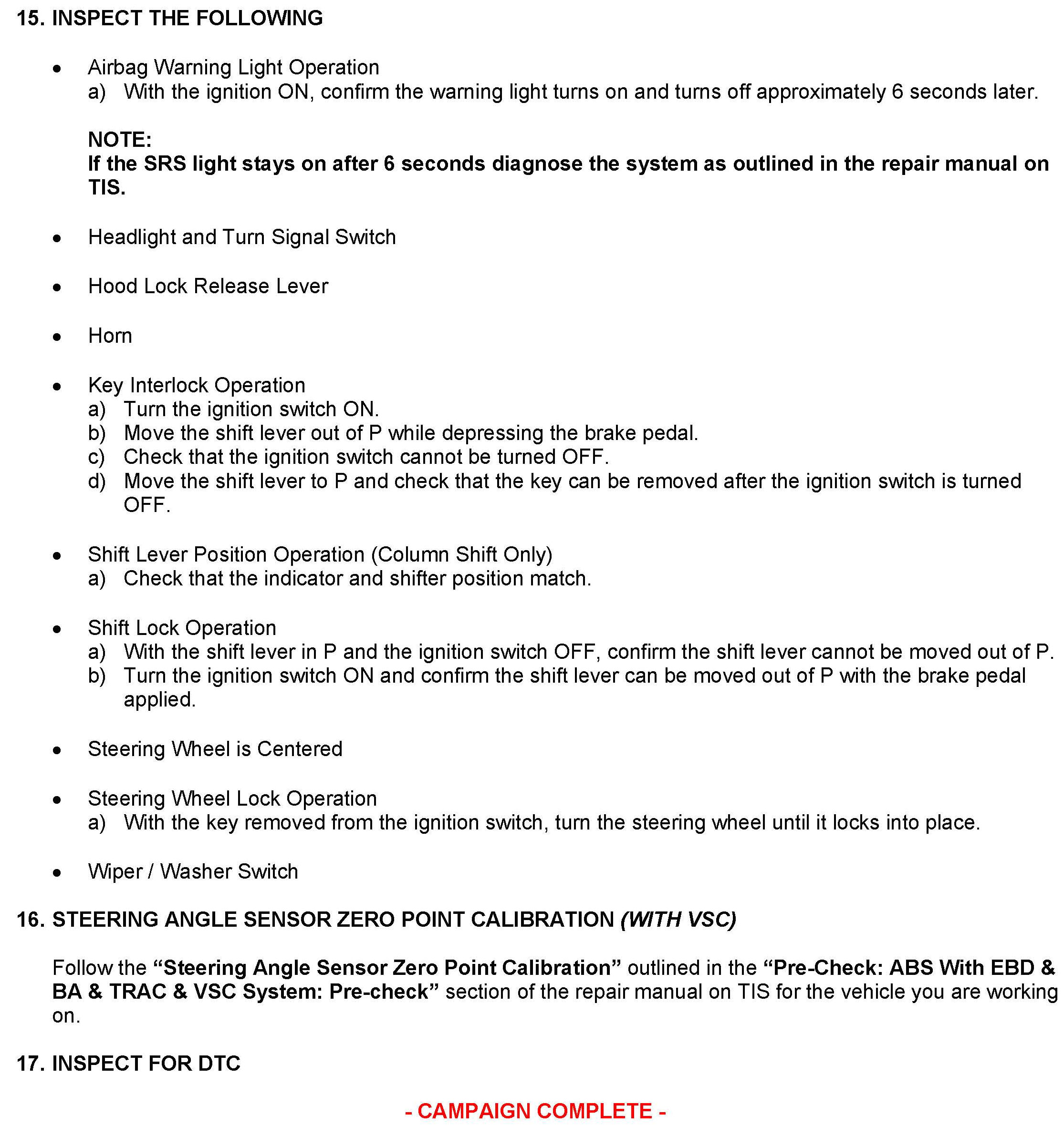 Recall - Steering Column Upper Bracket Replacement