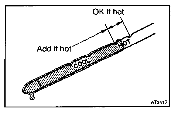 - Only use the COOL range on the dipstick as a rough reference when the fluid is replaced or the engine does not run.