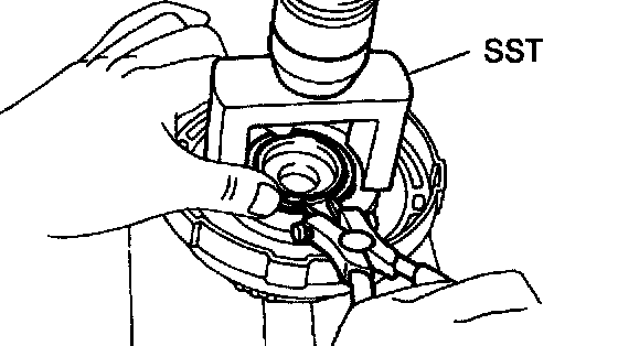 a. Place SST on the return spring and compress the springs with a press.