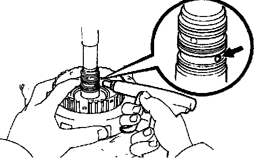 b. Check that the end gap of snap ring is not aligned with one of the cutouts.