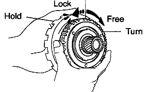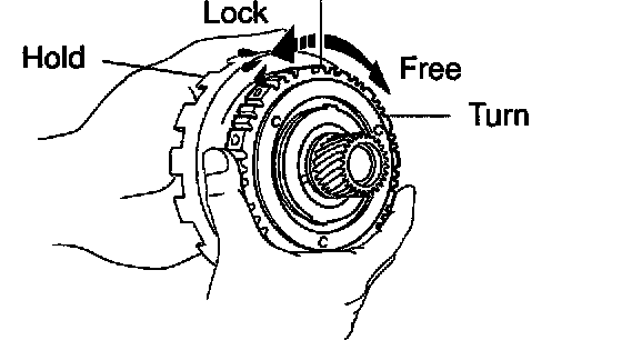 Hold the sun gear and turn the hub. The hub should turn freely clockwise and should lock counterclockwise.