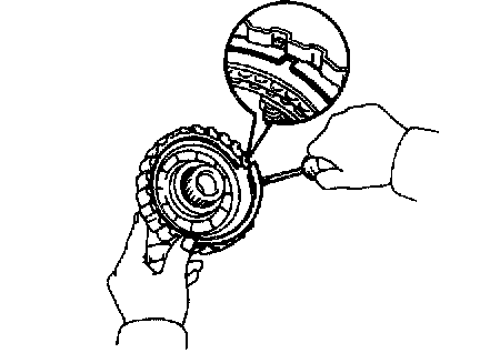 c. Using a screwdriver, install the snap ring. Be sure end gap of snap ring is aligned with the groove of the clutch drum.