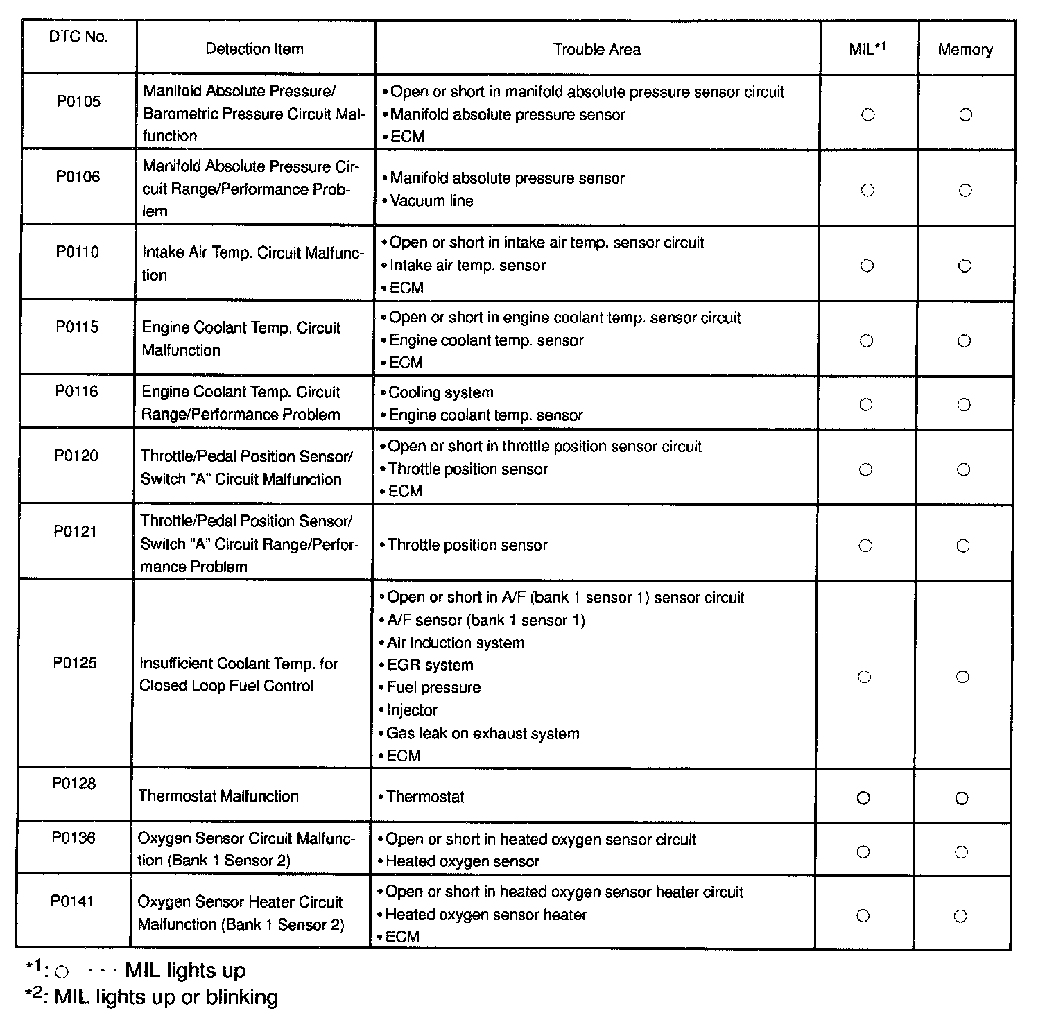 P0105 - P0141: