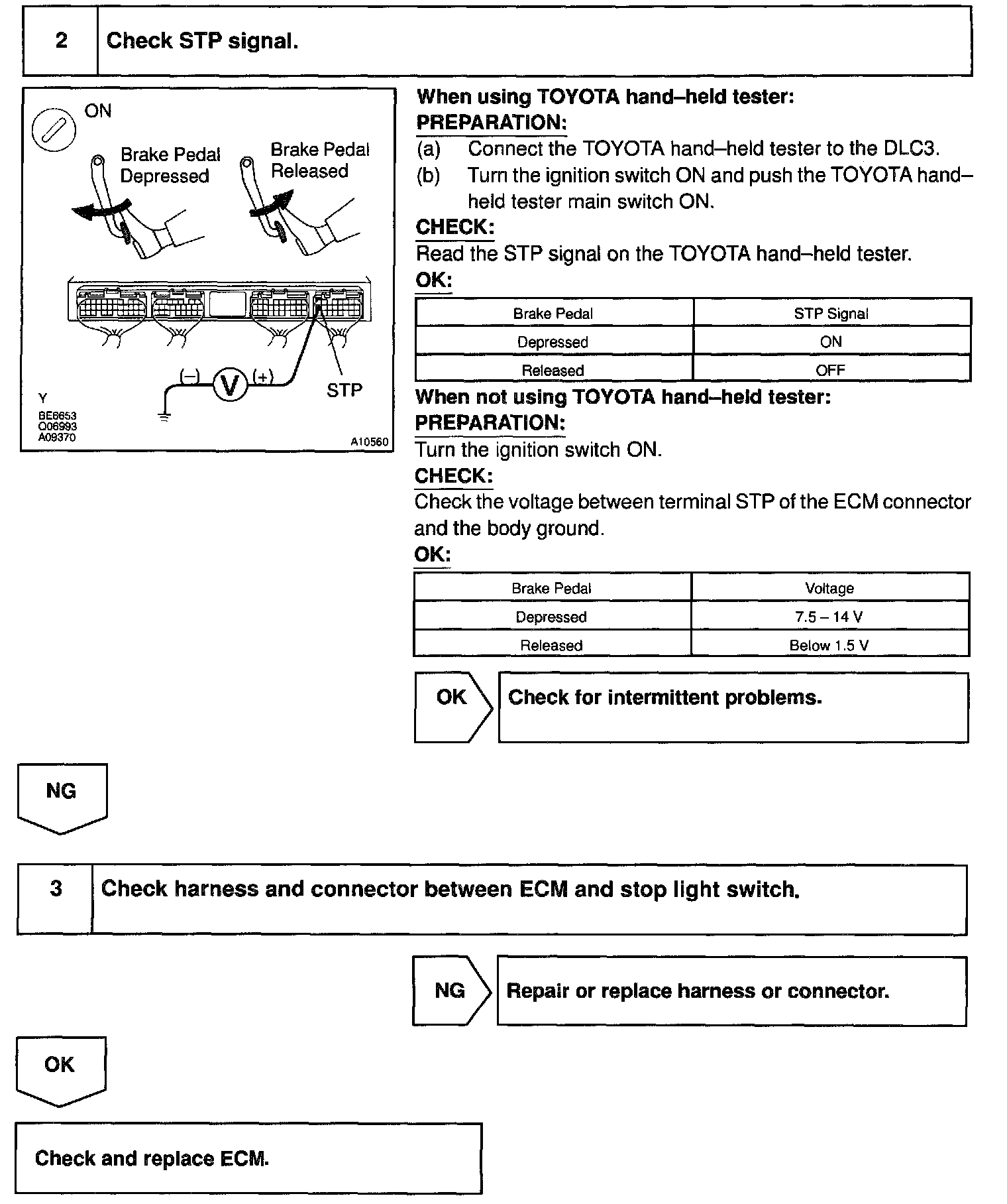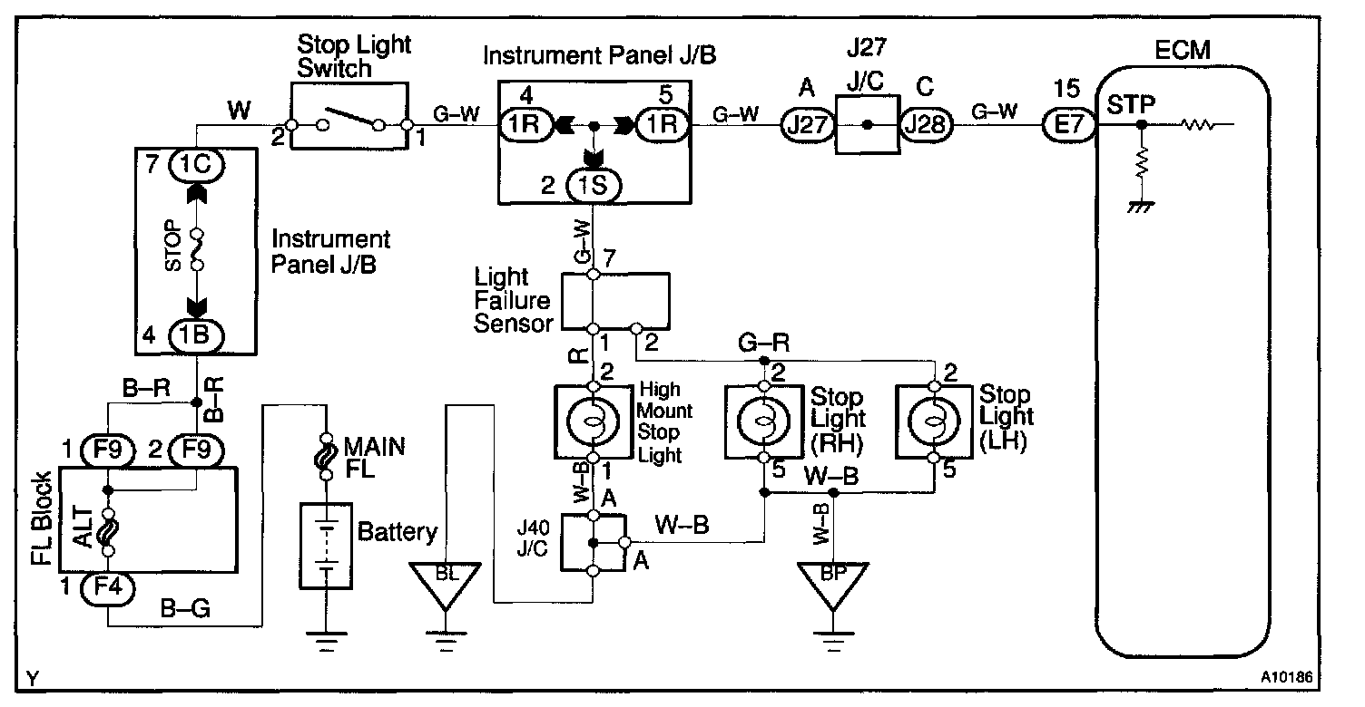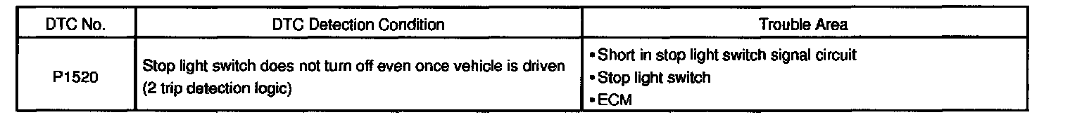 This signal is used to detect when the brakes have been applied. The STP signal voltage is the same as the voltage supplied to the stop lights. The STP signal is used mainly to control the fuel cutoff engine speed.