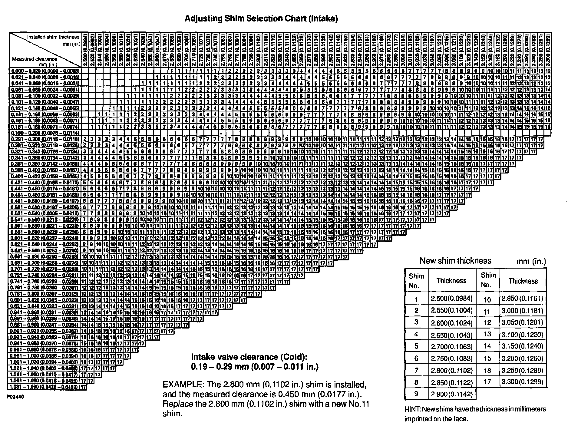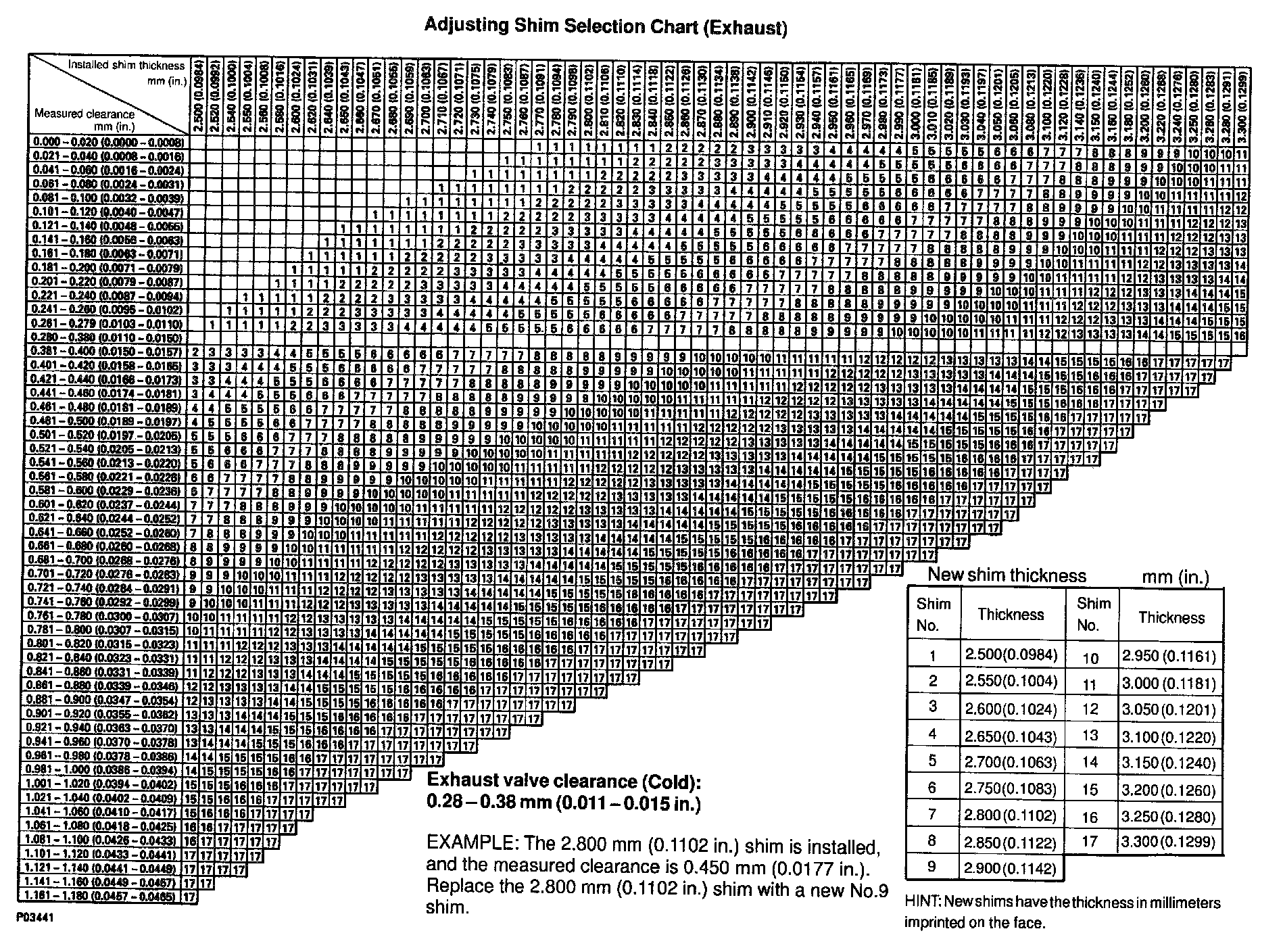 ADJUSTING SHIM SELECTION CHART