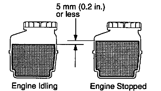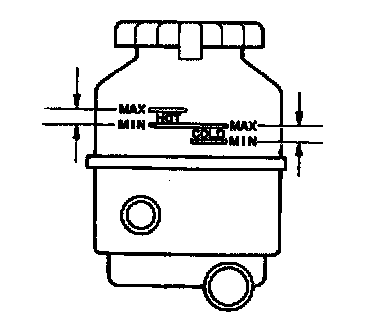 HINT: Check that the fluid level is within the HOT LEVEL range on the reservoir. If the fluid is cold, check that it is within the COLD LEVEL range.