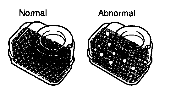 e. Check for foaming or emulsification. If there is foaming or emulsification, bleed power steering system.