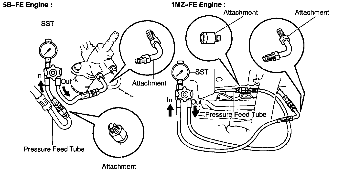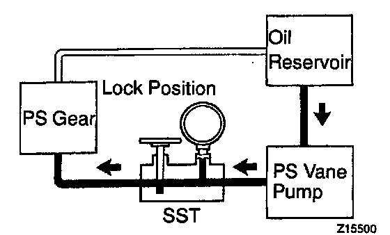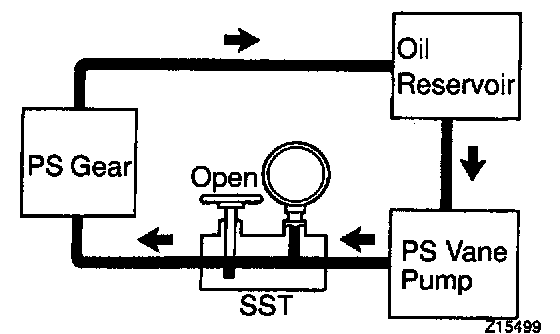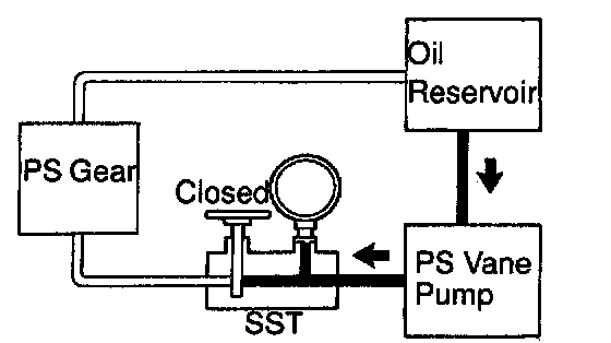 f. With the engine idling, close the valve of the SST and observe the reading on the SST.