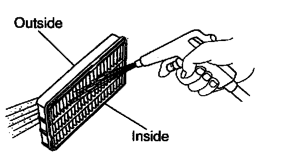 First blow from the inside thoroughly, then blow off the outside of the air filter.