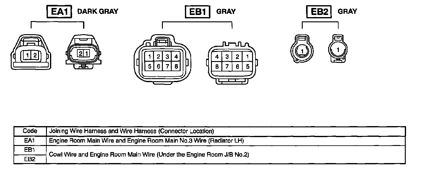 Wire Harness To Wire Harness Connectors (EA1, EB1 - EB2):