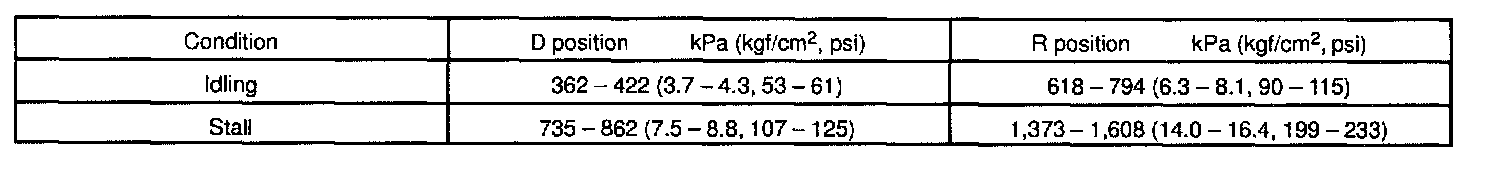 8. Depress the accelerator pedal all the way down. Quickly read the highest line pressure when the engine speed reaches the stall speed.