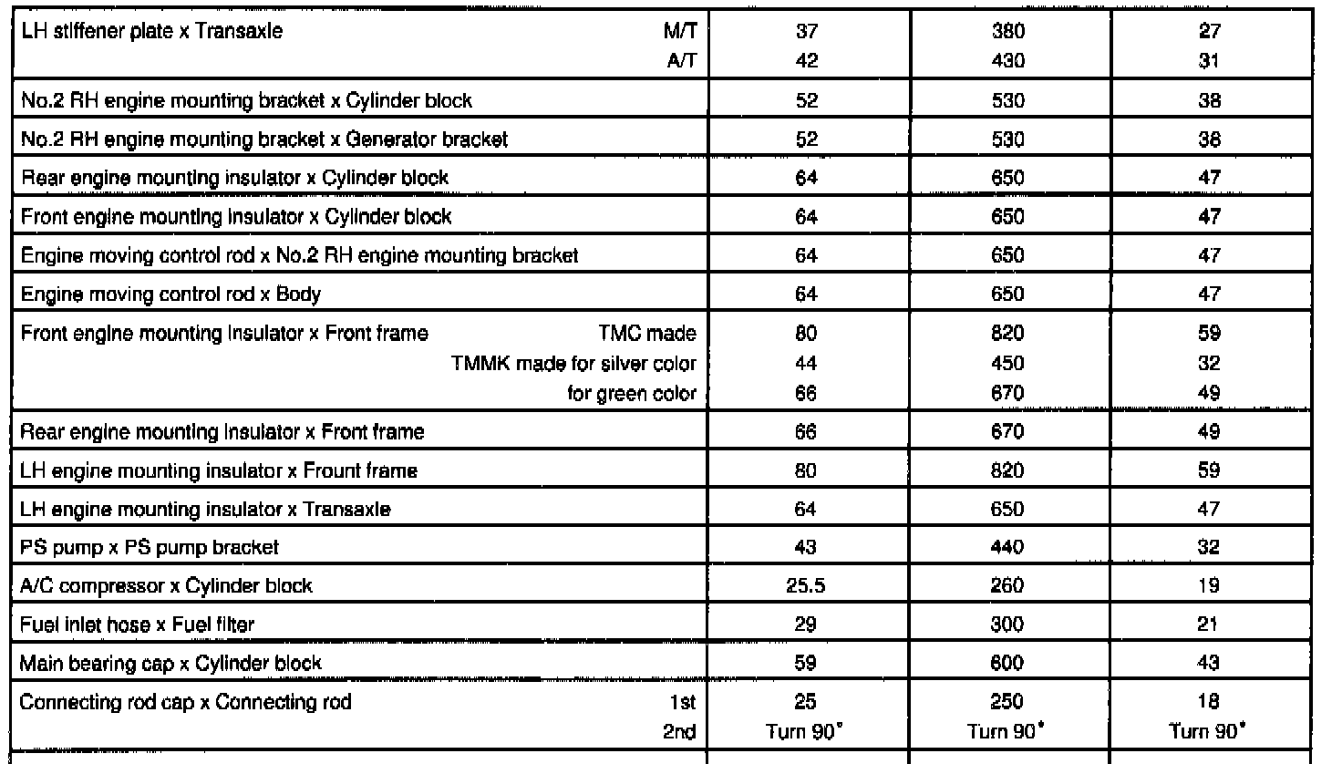 5S-FE Engine Mechanical Torque: