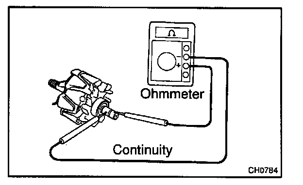 Using an ohmmeter, check that there is continuity between the slip rings.