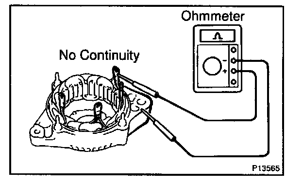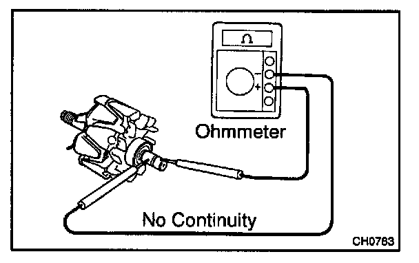 Using an ohmmeter, check that there is no continuity between the slip ring and rotor.