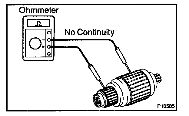 Using an ohmmeter, check that there is no continuity between the positive (+) and negative (-) brush holders.
