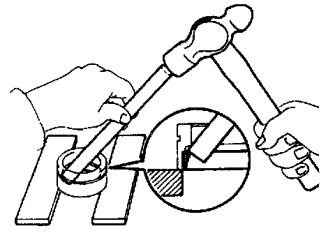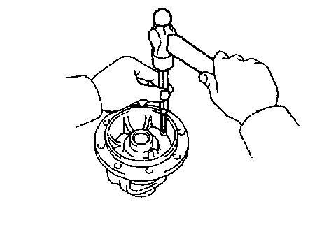 Using a hammer and brass bar, drive out the outer race from the cage.