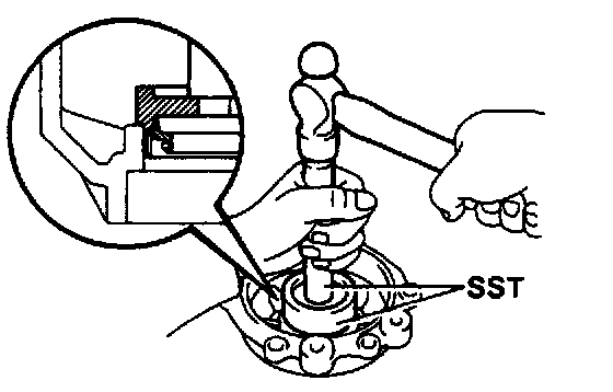 a. Using SST, drive in a new oil seal until its surface is flush with the surface of the case.