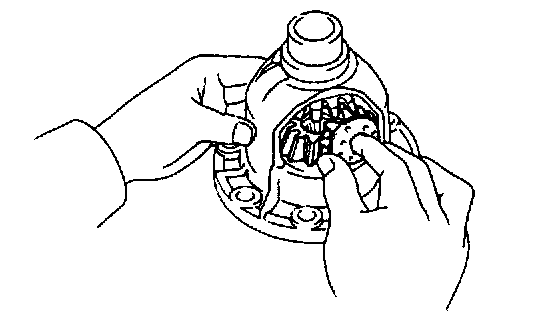 b. Install the side gears with thrust washers, pinion thrust washers and pinion gears.
