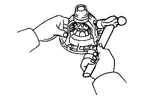 Using a dial gauge, measure the backlash of each side gear while holding one pinion toward the case.