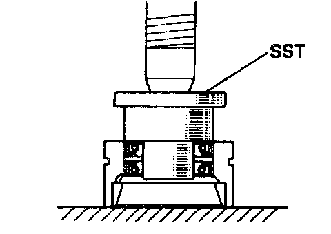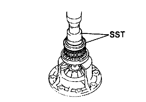 b. Using SST and a press, press in the RH side bearing onto the differential case.