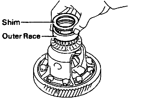 1. PLACE OUTER RACE AND ADJUSTING SHIM ONTO RH SIDE BEARING