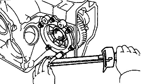 c. Temporarily tighten the bolts evenly and gradually while turning the ring gear.