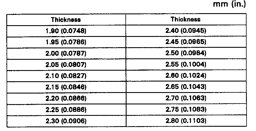 Use the adjusting shim which was removed or one 2.40 mm (0.0945 inch) thick.