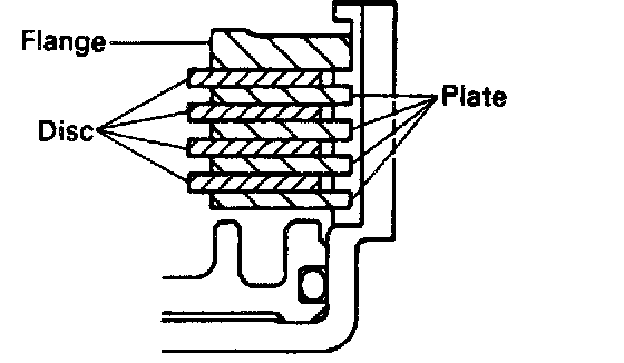 Check if the sliding surfaces of the discs, plates and flange are worn or burnt. If necessary, replace them.