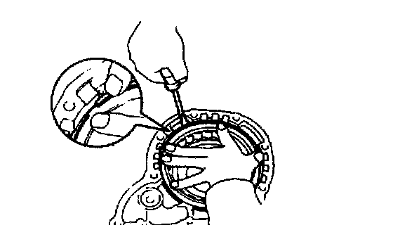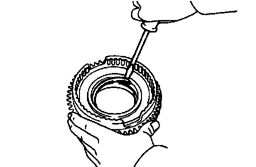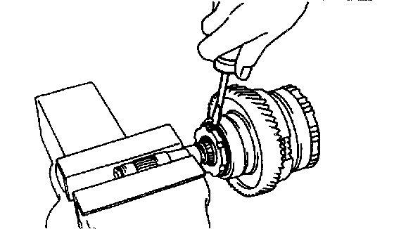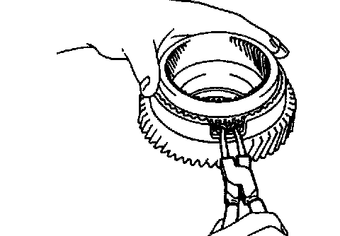 a. While pulling up the ring gear, compress the snap ring with needle-nose pliers and remove it from the groove.